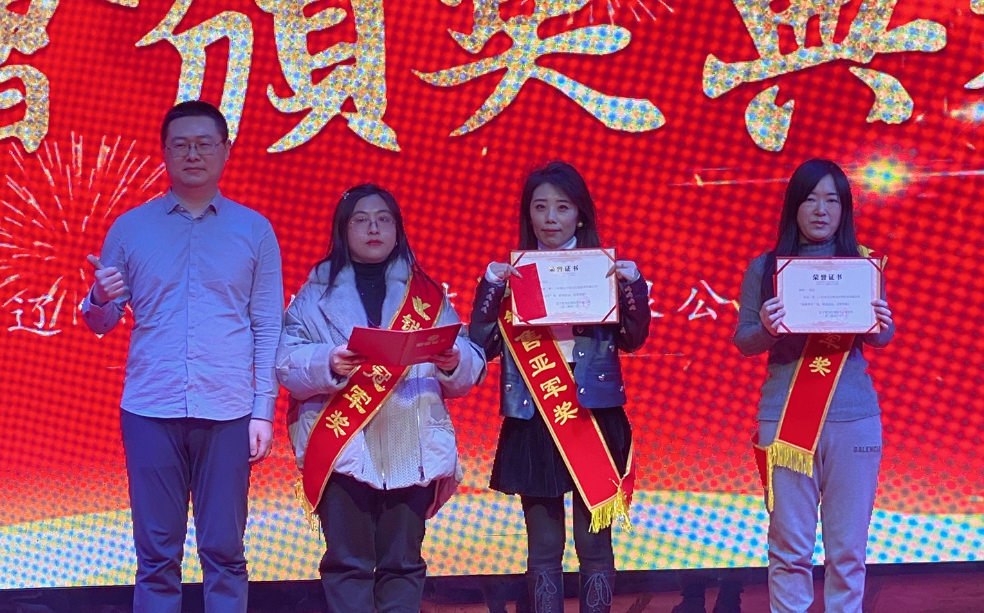 周瑜獲得集團事業(yè)部2023年度超目標獎、集團事業(yè)部年度銷售冠軍獎;李榮久獲得集團事業(yè)部2023年度超目標獎;邵丹獲得集團事業(yè)部2023年度超目標獎。嘉賓李占忠先生、總經(jīng)理王鐵良先生為獲獎?wù)哳C獎。